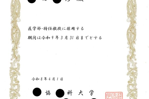 平成28年1月 獨協医科大学医学部・特任教授(兼任)