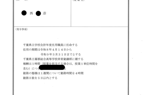令和5年4月 千葉大学大学院医学研究院・副研究院長(総務担当)(兼任)(〜令和6年3月)