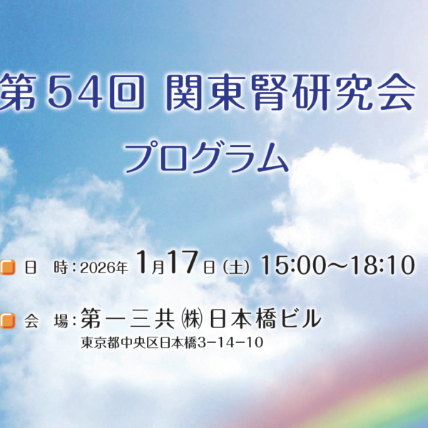 第54回関東腎研究会は令和8年1月17日(土)15時から日本橋にて開催