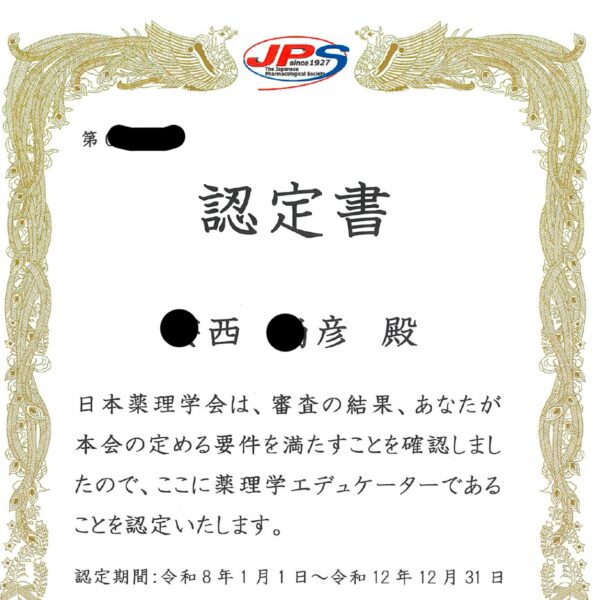 薬理学エデュケーター更新