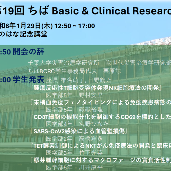 第19回ちばBasic & Clinical Research Conference (BCRC)は令和8年1月29日(木)12:50~開催