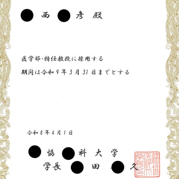 辞令を拝受(獨協医大と金沢医大)