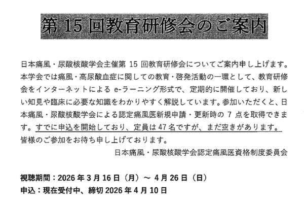 | 2024/10/12 | 第46回日本高血圧学会総会シンポジウム「降圧治療と尿酸管理の両立・実践」 | 福岡国際会議場 | シンポジウム | 尿酸動態におけるトランスポーターの役割:降圧薬による影響 |