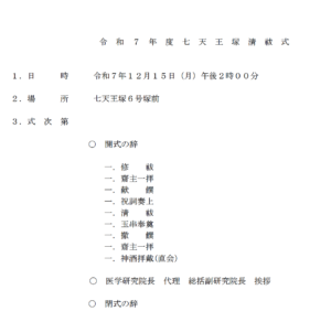 2025年12月15日(月)、千葉大学亥鼻キャンパスでの年末恒例の行事、七天王塚清祓式に参加してきました。