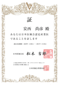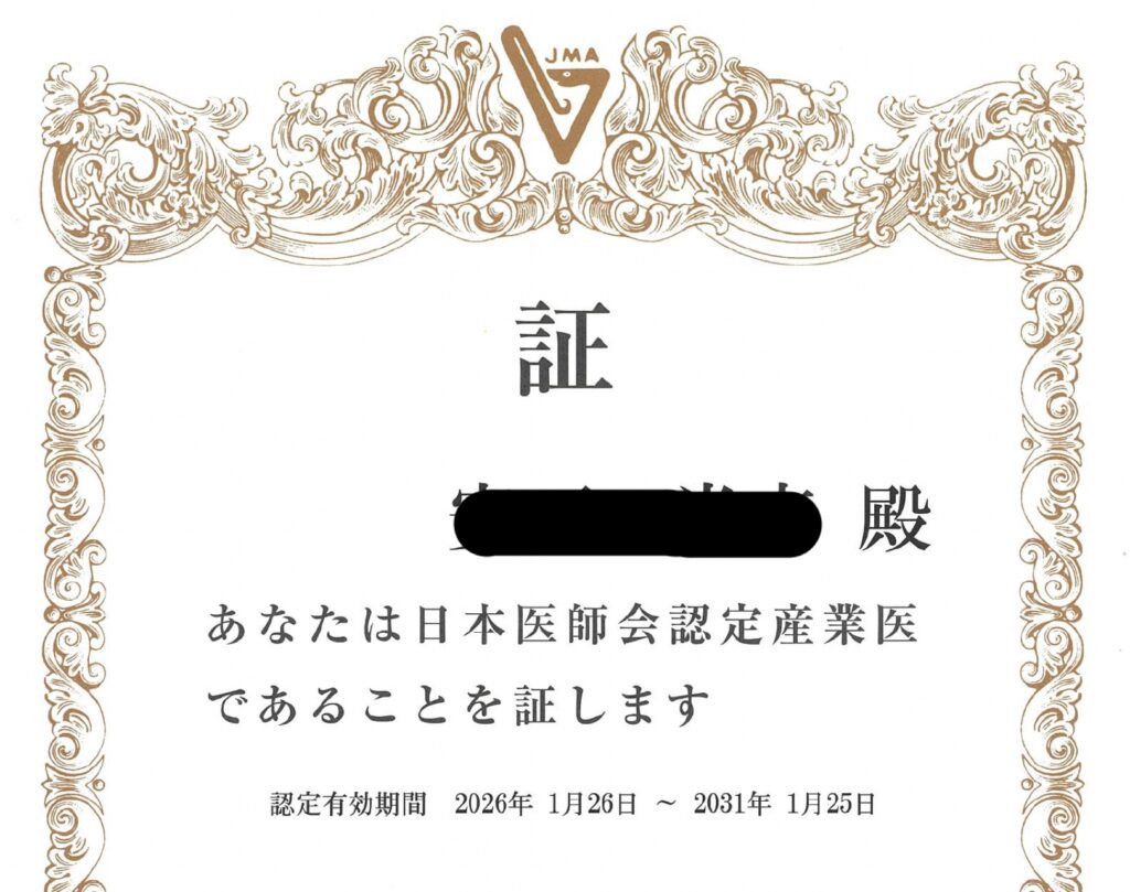 この度、日本医師会認定産業医を更新させて頂きました。 ペーパー産業医のままこれで2度目。