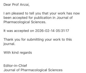 世間はこの日バレンタインデーですが、この日の19:31に、昨年日本薬理学会機関誌Journal of Pharmacological Sciences に投稿した論文が受理された、と報告がありました。