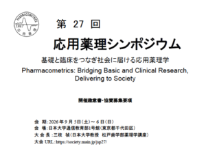 第27回応用薬理シンポジウムは、9/5(土)~6(日)に都内開催