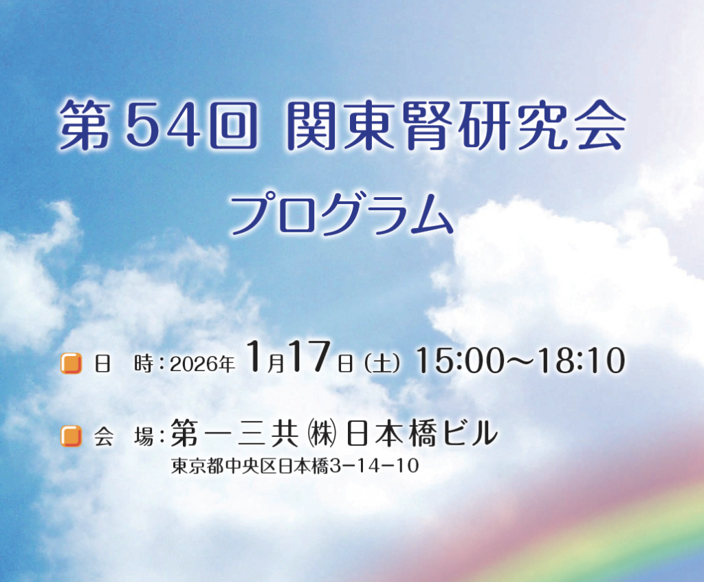 第54回関東腎研究会は、令和8年1月17日(土)午後3時から、昨年に続き日本橋にて開催されます。